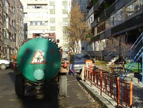 Mirosul este insuportabil, iar rezistenţa blocului, în care locuiesc 264 familii, şubrezeşte, după ce canalizarea menajeră refulează de două-trei ori…