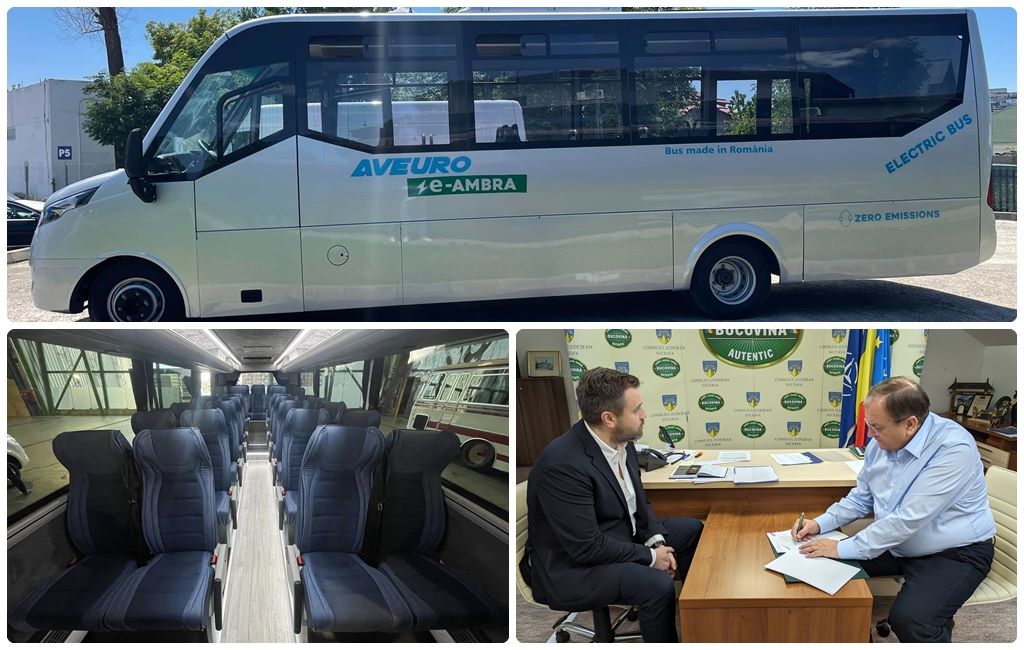 ”Astăzi, 4 aprilie, Consiliul Județean Suceava a semnat contractul cu furnizorul Aveuro International care a câștigat licitația pentru achiziționarea de microbuze electrice în 26 de comune din județ, cu termen de livrare sfârșitul acestui an. Este vorba despre microbuze electrice pentru transportul elevilor marca Ford AVEURO TRANSIT M2 cu 16 locuri pe scaune și un loc pentru persoane cu dizabilități. Totodată sunt prinse în proiectul de finanțare și chletuielile de înmatriculare în circulație a acestor microbuze” – se arată într-un comunicat al Consiliului Județean Suceava.