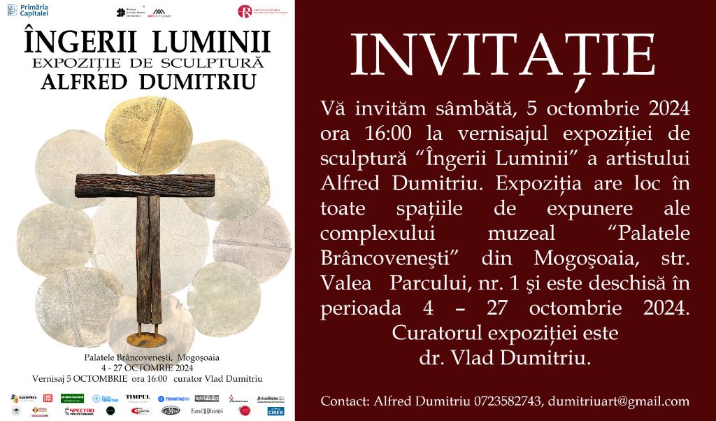 Complexul Muzeal „Palatele Brâncovenești” din Mogoșoaia găzduiește o nouă expoziție de artă semnată de sculptorul câmpinean Alfred Dumitriu, intitulată „Îngerii Luminii”. Evenimentul oferă o perspectivă profundă și unitară asupra creației artistice, punând accent pe teme majore precum natura, războiul și armonia umană.