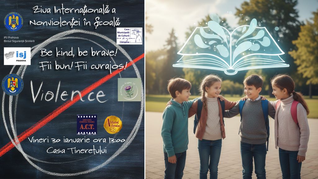 Vineri, 30 ianuarie, începând cu ora 13:00, la Casa Tineretului din Câmpina, Asociația Câmpina Tânără și Atelierul Actorului organizează o conferință dedicată promovării siguranței, empatiei și respectului în școli, sub mesajul „Be kind, be brave! / Fii bun! Fii curajos!”