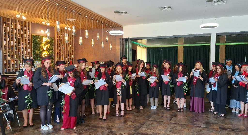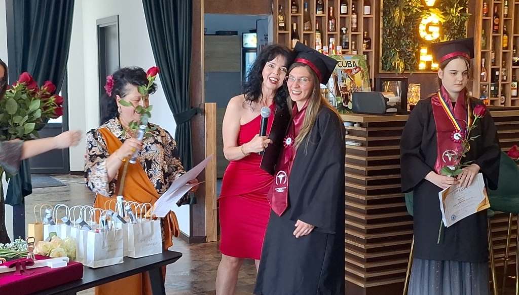 Conform tradiției, la final, absolvenții și-au aruncat tocile în aer, marcând simbolic finalul unui ciclu academic. După ceremonia solemnă, a urmat petrecerea, unde participanții au dansat, au mâncat, au băut și s-au bucurat de acest moment unic, care anunță începutul unei vieți pline de responsabilități, așa cum a punctat și doamna director Ana Moroiță: „Azi vă bucurați, e normal, ați muncit din greu. Dar de mâine vă întoarceți la viața reală, viața de asistent medical…”