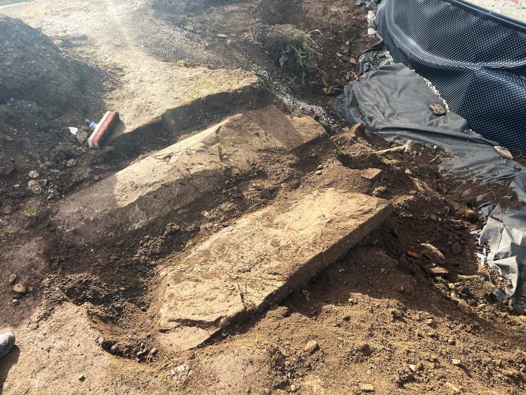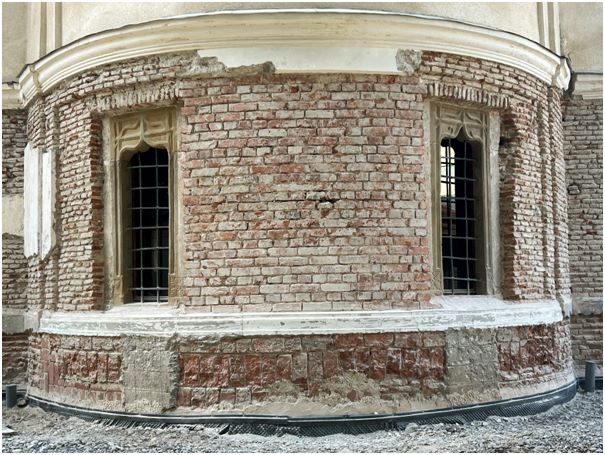 Avem așadar o șansă istorică, întâlnită odată la câteva generații, să putem „citi” istoria unei biserici vechi pe zidurile ei. Foarte curioase sunt cărămizile vechi puse în picioare ca un placaj, prin care practic s-a înălțat soclul inițial până sub ferestre: ele ne spun faptul că, cel mai probabil, au fost puse la o refacere timpurie (probabil la cea din 1887, fiind mai groase decât cele vechi tradiționale). Înălțarea soclului arată că e posibil ca deja de atunci să fi crescut nivelul de călcare al curții – și o ipoteză plauzibilă ar fi aceea că molozul rezultat de la demontarea turlei (poate turlelor ?) și bolților bisericii, care fuseseră afectate de incendiul din 1885, a fost împrăștiat în jurul bisericii contribuind la creșterea nivelului curții (operațiune deliberată având în vedere că nici fundația bisericii nu era prea adâncă). Ipoteza ar fi confirmată și de găsirea (în noiembrie anul trecut) a unei pietre de mormânt din anii 1860 (foto 3), aparținând cimitirului parohial din jurul bisericii, care se află aproximativ la același nivel cu plinta fundației ce indică nivelul de călcare originar; în plus, sursele documentare pomenesc și o reparație a bisericii la 1872. Toate acestea indică faptul că ridicarea nivelului de călcare din curtea bisericii va fi avut loc mai ales cu prilejul lucrărilor din 1872 și 1887-88.