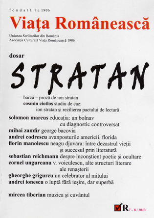 Cel mai recent număr din prestigioasa revistă „Viaţa Românească”, proiect editorial finanţat, iată, acum, de Administraţia Fondului Cultural Naţional, dedică un dosar substanţial poetul Ion Stratan, de la a cărui dispariţie se vor împlini în octombrie curent 8 ani. Fragmentele de proză intitulate „Barza”, amintind referenţial şi ironic de avangarda interbelică a secolului, de textele urmuziene, sunt completate cu un incitant „studiu de caz” semnat de Cosmin Ciotloş şi dedicat „rezilierii pactului de lectură” la remarcabilul poet ploieştean.