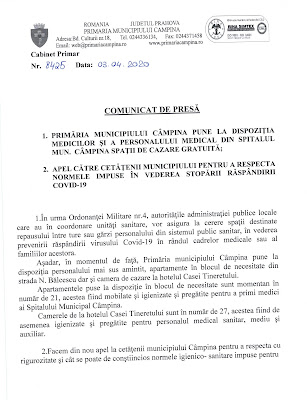 1. PRIMĂRIA MUNICIPIULUI CÂMPINA PUNE LA DISPOZIŢIA MEDICILOR ŞI A PERSONALULUI MEDICAL DIN SPITALUL MUN. CÂMPINA SPAŢII DE CAZARE GRATUITĂ;