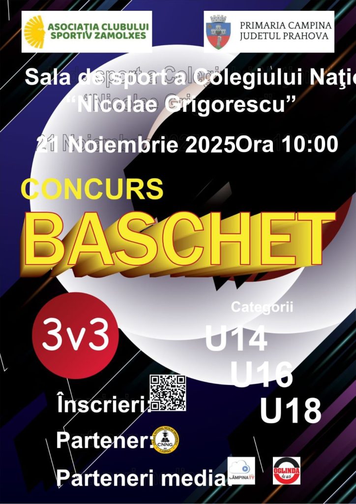 Asociația Clubului Sportiv Zamolxes organizează cea de-a doua ediție a concursului de baschet 3×3 din cadrul proiectului „Sport pentru TINEri”, eveniment ce va avea loc pe 21 noiembrie, începând cu ora 10:00. Competiția se adresează tinerilor din școlile și liceele din Câmpina, înscriși la categoriile U14, U16 și U18, având ca obiectiv promovarea și dezvoltarea activităților sportive în rândul comunității locale.
