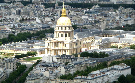 Îndată ce ai trecut pe malul celălalt al Senei, te întâmpină un bulevard larg, mărginit de încântătoare spaţii verzi şi curând ajungi în faţa Hotelului Invalizilor. Această clădire monumentală a fost construită la ordinul lui Ludovic al XIV-lea – Regele Soare, ca semn de preţuire faţă de veteranii de război întorşi în Franţa răniţi, bolnavi sau cu vreun handicap, săraci sau rămaşi fără un adăpost. Clădirea cu o impresionantă faţadă lungă de 195 metri a fost începută în 1671 şi terminată în 1676, mulţi considerând-o o capodoperă arhitectonică a secolului al XVII-lea.
