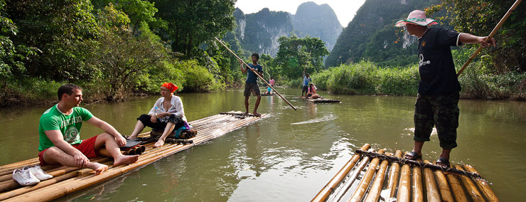 O barcă cu motor cu o capacitate de circa 30 de persoane ne ia din port şi ne duce în mare viteză în acest parc naţional format din 42 de insuliţe stâncoase şi numeroase peşteri marine numite „hong”. Ambarcaţiunea se opreşte la ţărmul unei insule, de unde suntem preluaţi de un localnic în bărci din cauciuc pentru două persoane, ce ne poartă spre aceste „honguri”, peşteri vechi din calcar, formate cu milioane de ani în urmă sub mare şi împinse la suprafaţă de deplasarea plăcilor continentale.