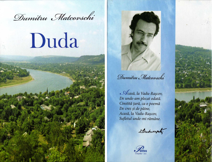 „Duda”, Coordonato[a]r[e] şi responsabil[ă] de ediţie Alexandrina Matcovschi, Chişinău, Pontos, 2016, volum apărut în cadrul Festivalului-Concurs Naţional de Poesie şi Cântec „Dumitru Matcovschi”, ediţia a V-a, cu sprijinul financiar al „Zonei Economice Libere Bălţi”, în 500 ex., este romanul satului natal al autorului (prima ediţie în 1973; Wikipedia). „Povestirea”, cum îi spune şi o repetă scriitorul, este un fel descriptio, concentrată asupra unui punct de pe harta Moldaviei, şi de amintiri din copilărie şi adolescenţă, narate la persoana întâia (de eul său, Scridon [=Dăruit scrisului]) şi fragmentate în mici povestioare, disipate în cele XXXI de capitole ale cărţii. Aceste povestioare sunt brodate pe cele şase-şapte luni, care trec de când profesorul de sport, Oraz Antonovici, îl lasă corijent pe vară – înaintea ultimului an de liceu – până la Anul Nou. („Să mă lase el corigent la educaţia fizică – pe mine, care pot trece Nistrul de patru ori, încolo şi încoace, fără să mă odihnesc!” ) Adolescentul Scridon povesteşte chiar atunci, în acea vară-toamnă-iarnă, cu mintea lui de atunci, cu orizontul său de atunci – în care intra satul de baştină, Nistrul şi două-trei sate din jur, acestea din urmă mai mult cu numele – şi numai arar scriitorul lasă să se întrevadă că s’a scurs ceva timp, de atunci, totuşi.
