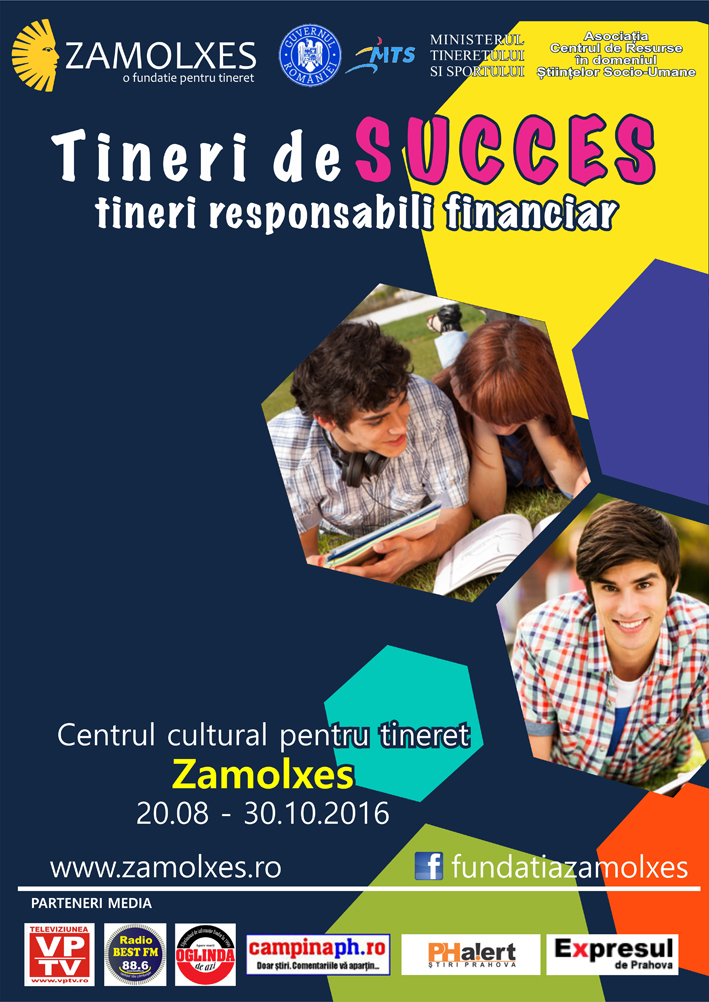 Fundația Zamolxes organizează in perioada 20 august – 30 octombrie proiectul „Tineri de succes, tineri responsabili financiar”. Proiectul este finantat de Ministerul Tineretului si Sportului.