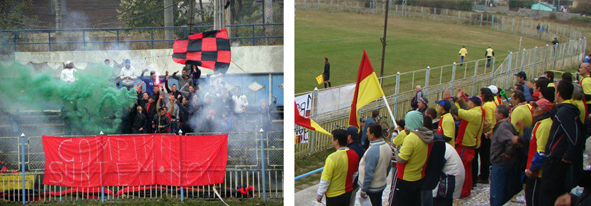 Înainte de acest derbi, echipa din Blejoi, principala contracandidată la promovare a echipelor noastre, ocupa locul trei, dar după remiza albă de pe stadionul Poiana, CS Vispeşti a ajuns pe al doilea loc în grupă, la şase puncte de Unirea, care şi-a păstrat poziţia fruntaşă, cu 34 de puncte. Locaţiile celor două galerii au fost decise, probabil, şi pentru ca distanţa apreciabilă dintre cei mai înfocaţi suporteri ai celor două echipe fruntaşe ale fotbalului câmpinean să împiedice eventuale altercaţii, verbale sau fizice, între membrii celor două grupări. Dacă la dispute fizice nu s-a ajuns, în schimb vorbe grele s-au aruncat, în special dinspre galeria “uniriştilor”. Cei mai pregătiţi, din punct de vedere logistic, au fost cei de la Unirea, care nu s-au sfiit să folosească fumigene şi petarde. În primul mitan, când ritmul de joc a fost ceva mai intens, galeriile s-au încins rapid, iar “urările de bine” adresate unii altora nu au întârziat să se facă auzite. În repriza a doua, când meciul a scăzut şi mai mult în intensitate, galeriile au continuat duelul lor fără a reuşi însă, mai deloc, să grăbească ritmul partidei. În a doua parte a meciului, “urările” cu care s-au gratulat reciproc în prima repriză au fost abandonate, iar suporterii din cele două galerii au schimbat registrul şi au început să facă referiri, în scandările lor, la reprezentanţii clubului advers (membri ai staff-ului, sponsori etc). Băieţii din galeria echipei Unirea au fost, de departe, cei mai agresivi şi mai licenţioşi în limbaj, din arsenalul lor nelipsind nici ameninţări cu închisoarea ale unor reprezentanţi ai clubului CSM Câmpina, nici scandări cu trimiteri spre perversiuni sexuale aplicate “duşmanilor” din teren şi din tribuna oficială. Cuvântul acela deocheat care desemnează denumirea populară a felaţiei a fost adeseori pe buzele lor. La rândul lor, însă într-un registru mult mai ponderat, cei din galeria CSM au pomenit în strigătele lor despre faptul că asocierea dintre Unirea şi PDL reprezintă cea mai mare mafie. Însă distanţa de la o scandare de tipul “Unirea şi PDL – cea mai mare mafie” la grobianisme de genul “Gurane, la puşcărie” şi “M- -e la ţărani şi la CSM” poate fi considerată taman distanţa dintre maidan şi o arenă sportivă în adevăratul înţeles al cuvântului.