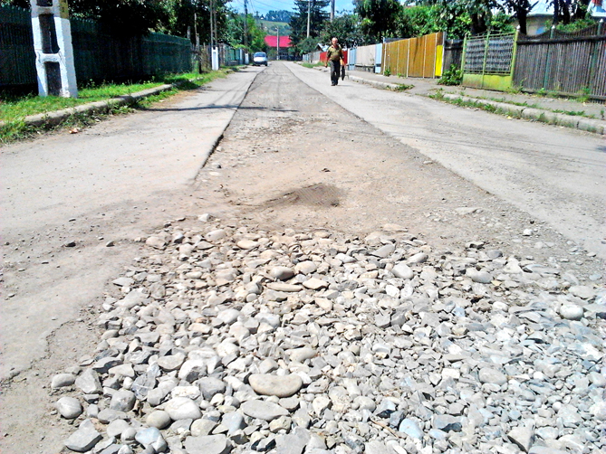 Strada Dealului a ajuns să semene cu un deal de pietriş