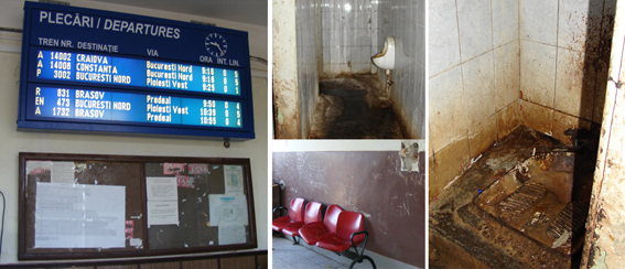 Recent, în cadrul unui foarte amplu – şi mult prea costisitor – program de modernizare a unor segmente de căi feroviare, la Gara Câmpina au fost montate tabele electronice care anunţă sosirea şi plecarea trenurilor, precum şi toate detaliile legate de minutele de staţionare, minutele de întârziere, linia la care se află, şi, bineînţeles, punctele de plecare şi sosire ale fiecărui tren. Arată foarte frumos, moderne, luminoase. Dar… Lângă aceste tabele electronice, regăsim aceiaşi pereţi vechi, murdari, scorojiţi, mizerabili, care poartă urmele unor doritori de nemurire. Dincolo de starea jalnică a pereţilor din holul principal, care ţine loc şi de sală de aşteptare, nu mai există nici un scaun întreg, arătându-se ochiului celor care ar veni să viziteze Câmpina un aspect dezolant, ca după bombardament – geamuri sparte, scaune scrijelite, de parcă aici s-ar fi duelat două galerii ale unor echipe de fotbal rivale şi nu ar fi doar o simplă gară. Iar dacă mai aveţi nenorocul de a vă apucă vreo necesitate fiziologică, atunci, în primul rând, trebuie să aveţi un… stomac foarte rezistent. Şi, poate cel mai grav, pentru starea jalnică a uneia dintre porţile de intrare în Câmpina nu răspunde nimeni!