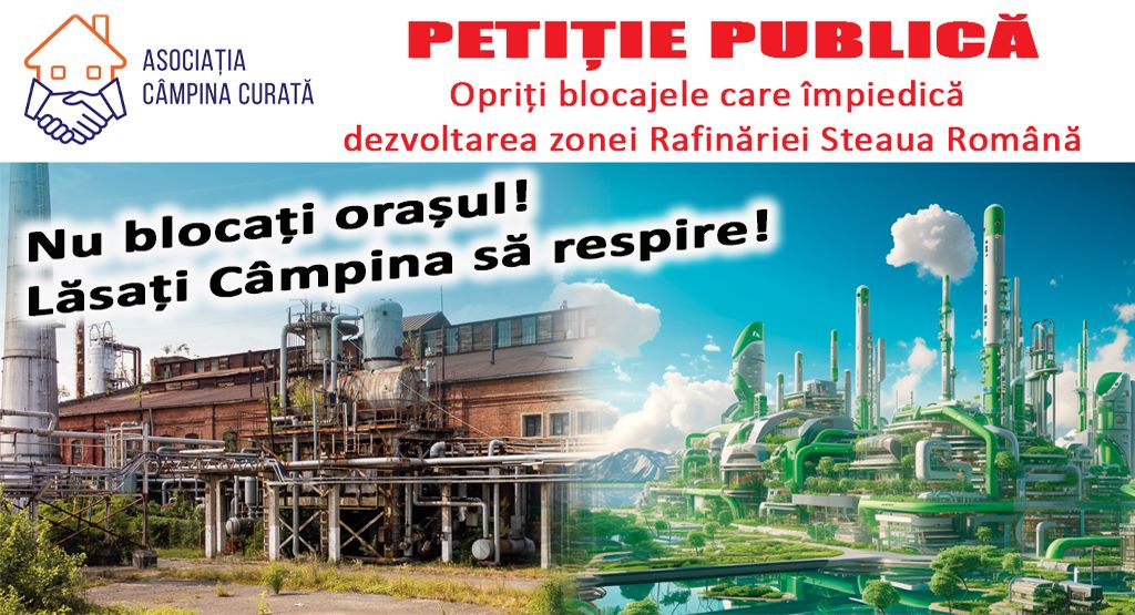 „Nu blocați orașul! Lăsați Câmpina să respire!” este titlul sugestiv al unei petiții adresate autorităților locale, Consiliului Județean Prahova, Ministerului Culturii, Guvernului României și întregii opinii publice, care reprezintă un apel urgent pentru sprijinirea dezvoltării orașului nostru prin revitalizarea fostei rafinării, asigurând astfel bunăstarea întregii comunități. „Prin această petiție vă invităm să vă alăturați în susținerea viitorului orașului nostru, un viitor care este amenințat de acțiuni întreprinse sub masca protejării patrimoniului, dar care, în realitate, sabotează dezvoltarea și bunăstarea municipiului Câmpina și a întregii noastre comunității. După ce fosta Rafinărie Steaua Română a fost preluată de un grup de firme locale cu capital 100% românesc, a fost lansat un proiect ambițios care promitea revitalizarea economică a Câmpinei. Cu toate acestea, așa-zișii conservatori ai patrimoniului au încercat să blocheze această inițiativă, solicitând clasarea Rafinăriei ca monument istoric. Această mișcare nu doar că a întârziat proiectul timp de ani de zile, dar continuă să oprească orice progres real în beneficiul orașului nostru” – se arată în textul petiției.